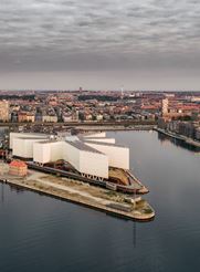 Som en otte-takket stjerne har FN-Byen lagt sig på spidsen af Marmormolen ved indsejlingen til Københavns Havn.
