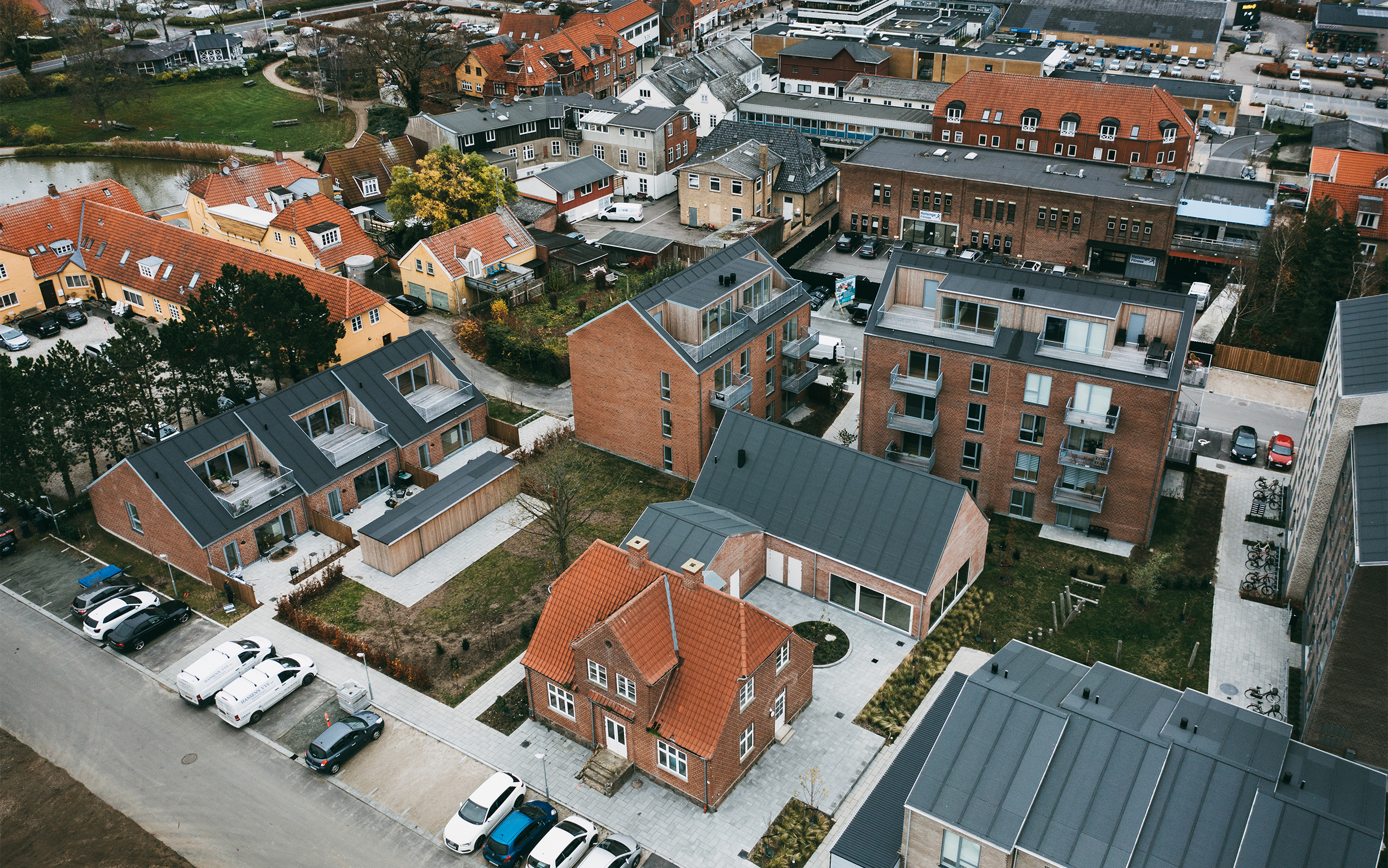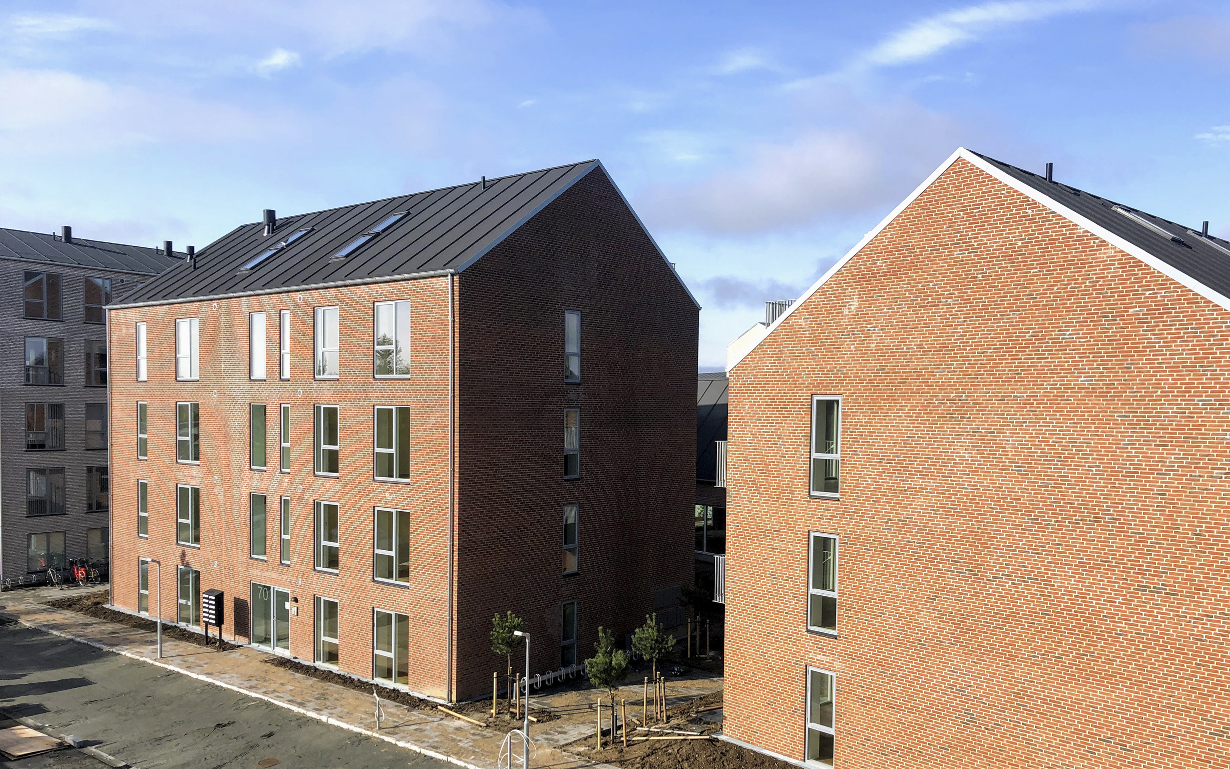 Den nye bebyggelse ligger i en ny bæredygtig bydel i Helsinge og både i bebyggelsen og i landskabet er der valgt bæredygtige materialer og løsninger, som skal sikre lang levetid og minimalt vedligehold.