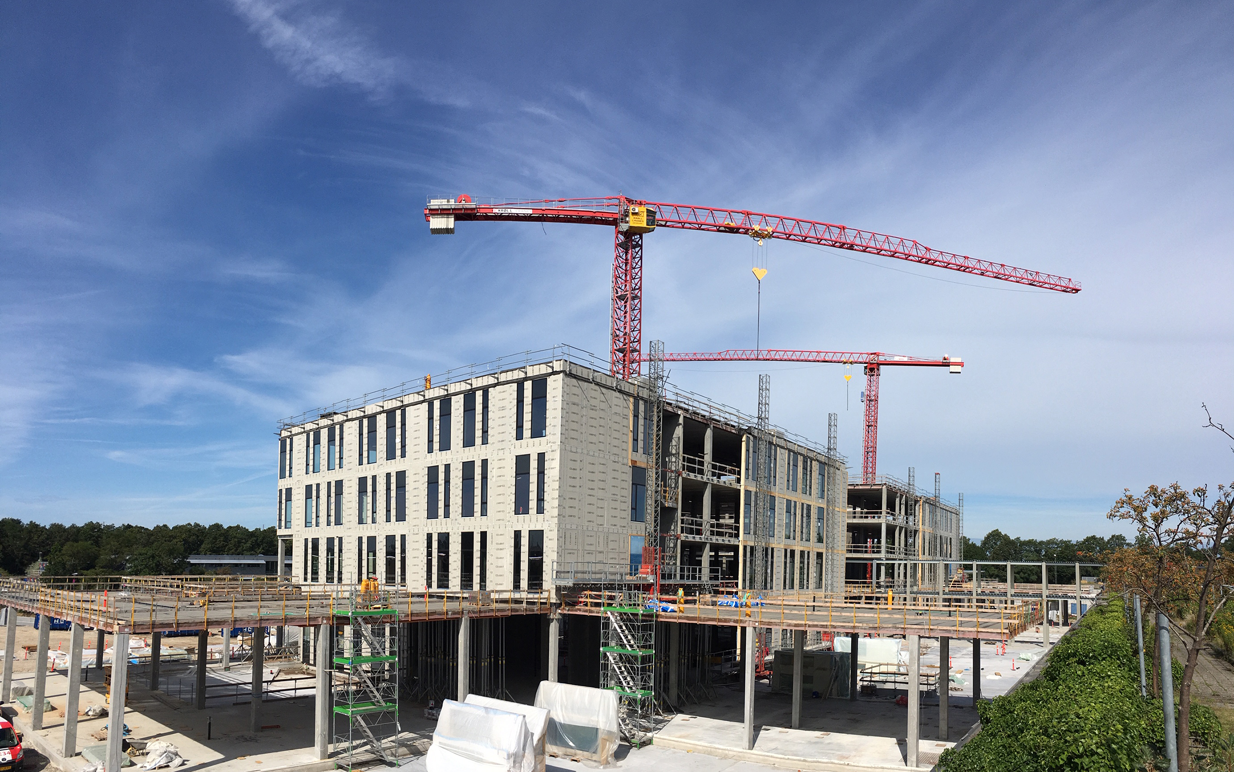 Byggeriet er udført i storentreprise, hvor LM Byg har stået for råhuset samt koordinering af jordarbejder, kloak, membraner og stålarbejder.