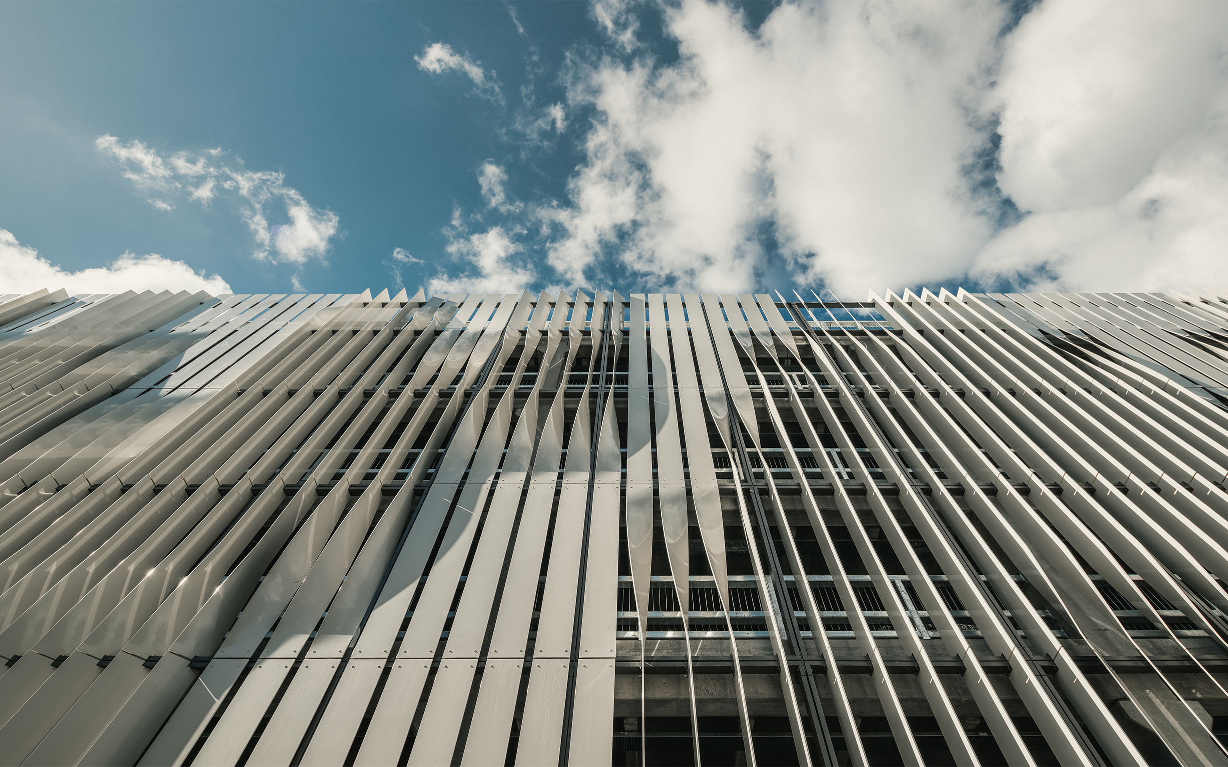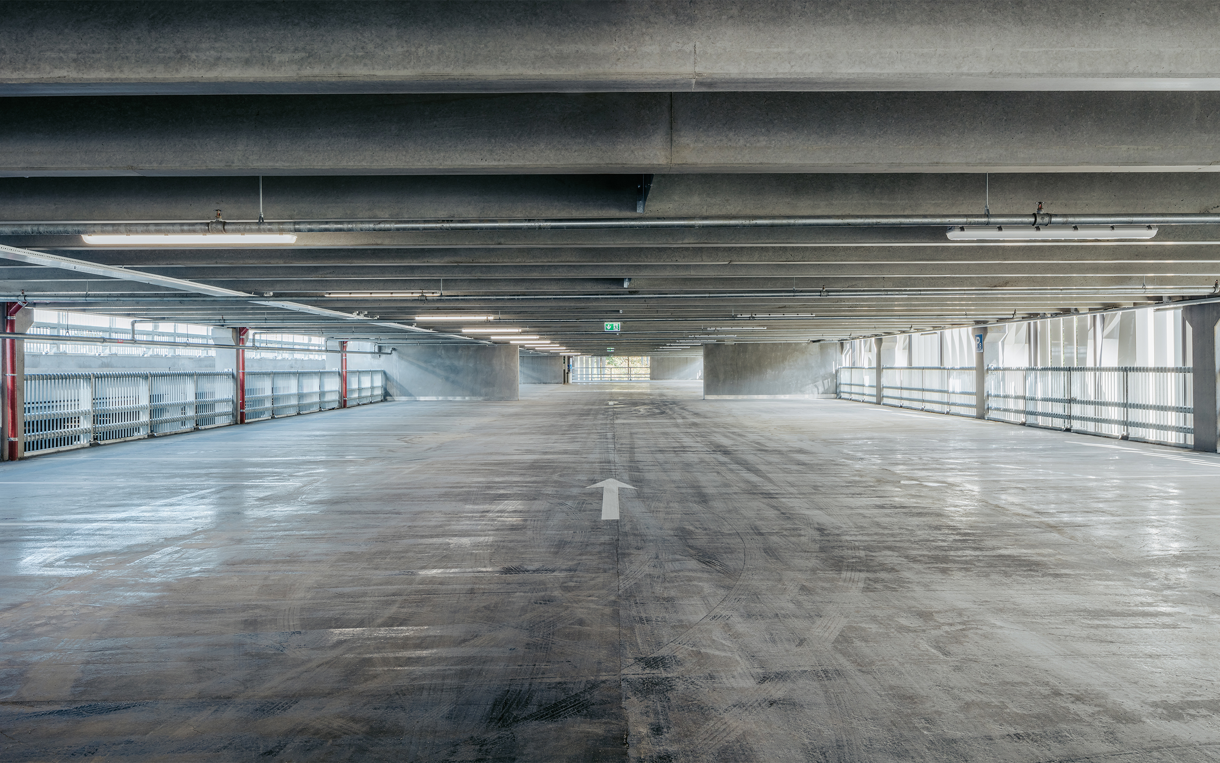 Parkeringshuset har plads til 665 personbiler og er opført i 10 parkeringsdæk samt terrændæk og en kælderetage.