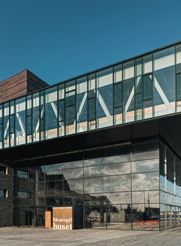 Der er i alt 4500 m² skalmurede facader og ca. 525 m² skalmurede vægge i auditoriet. Murværket i auditoriet er forskudt for at opnå de ønskede akustiske egenskaber. De anvendte sten er Kolumba K57 fra Petersen Tegl.